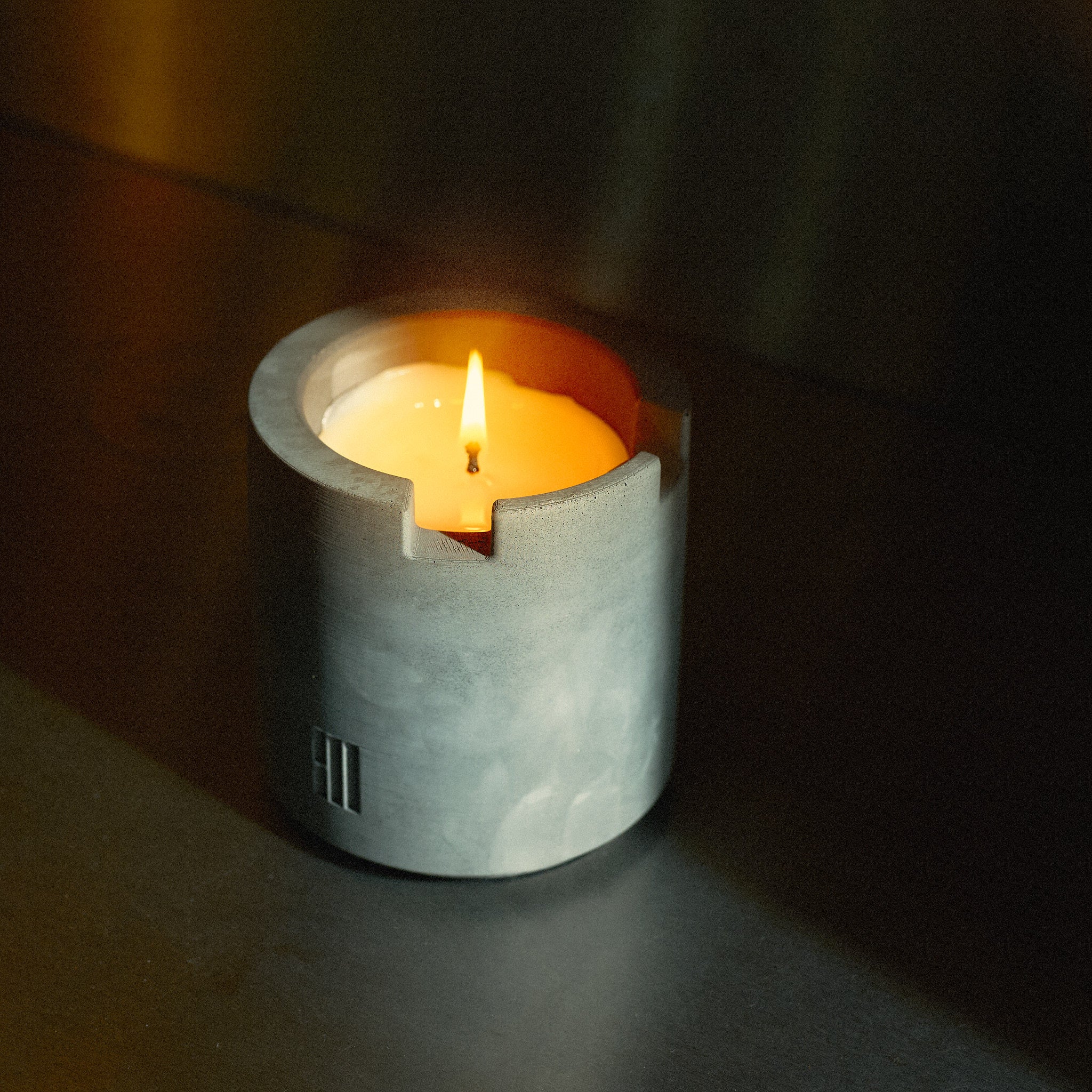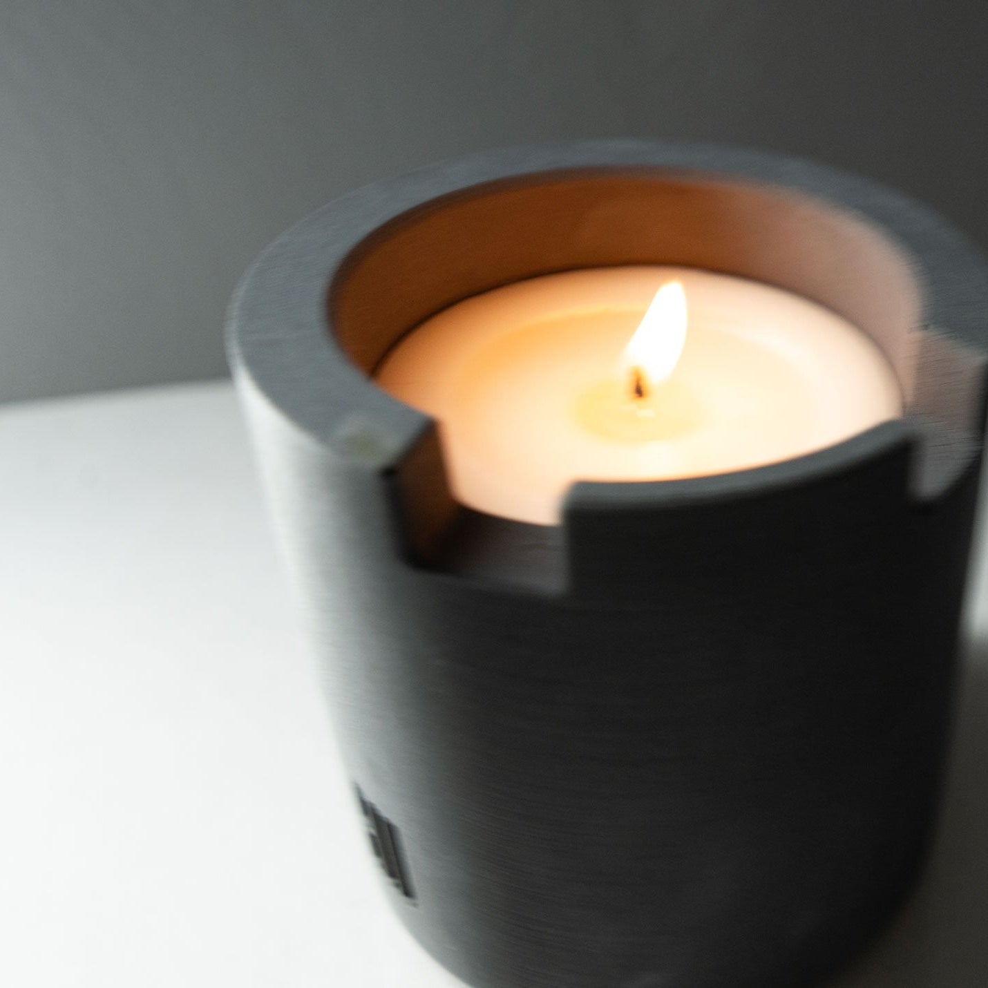 We've crafted a candle that evokes towering castles and ancient winters filled with smokey hearths, hanging spice, and dried tinder. We call the scent "blast furnace" as a nod to the cement manufacturing process and to illustrate how smokey and warm it feels. Your space will be transformed into a gallant hall of fire and resinous woody notes after burning the Crenel Candle and your atmosphere will be grounded by the weight of the brutalist architectural silhouette of the candle vessel.